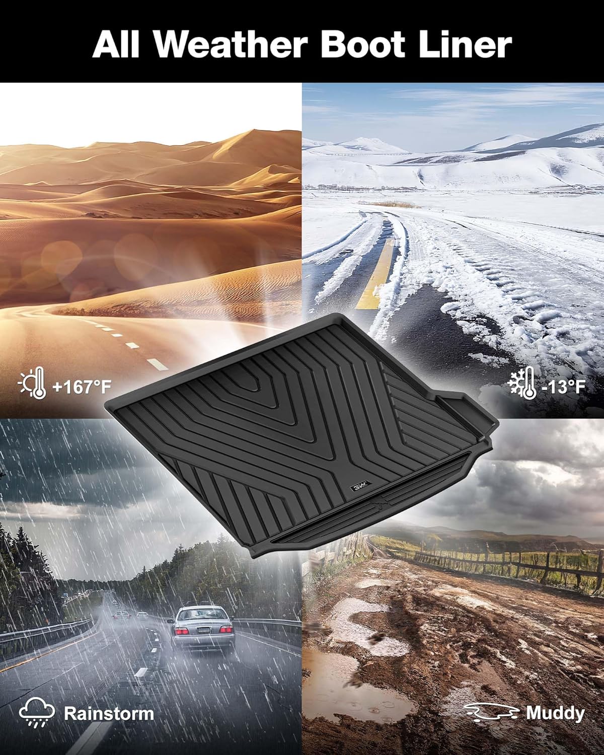 استخدمنا تقنية المسح ثلاثي الأبعاد المتقدمة للسيارة الحقيقية لالتقاط كل زاوية وانحناء بدقة، لتصميم دعاسة الصندوق الخلفي مخصصة تناسب سيارة بي إم دبليو X3 لسنوات 2018 : 2025. توفر هذه الدعاسة تغطية كاملة تساعد على حماية السجاد الداخلي من الأمطار والطين والثلوج، كما تحتوي الأوساخ الناتجة عن الأغراض المبللة أو المتسخة.