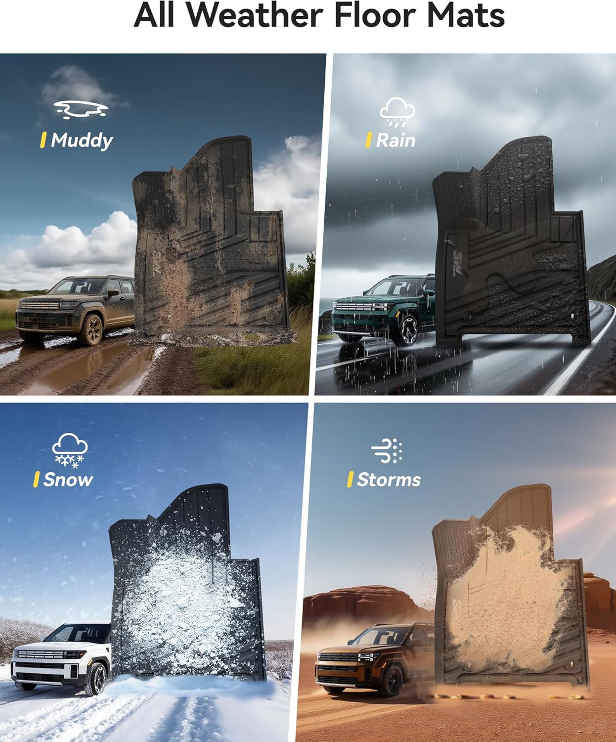 هذه الدعاسة مصنوعة خصيصًا لـ هيونداي سانتا 2024-2026. استخدمنا معدات مسح ليزري ثلاثية الأبعاد متطورة لقياس الأبعاد الدقيقة، مما يضمن ملاءمة الدعاسات تمامًا مع أرضية السيارة.