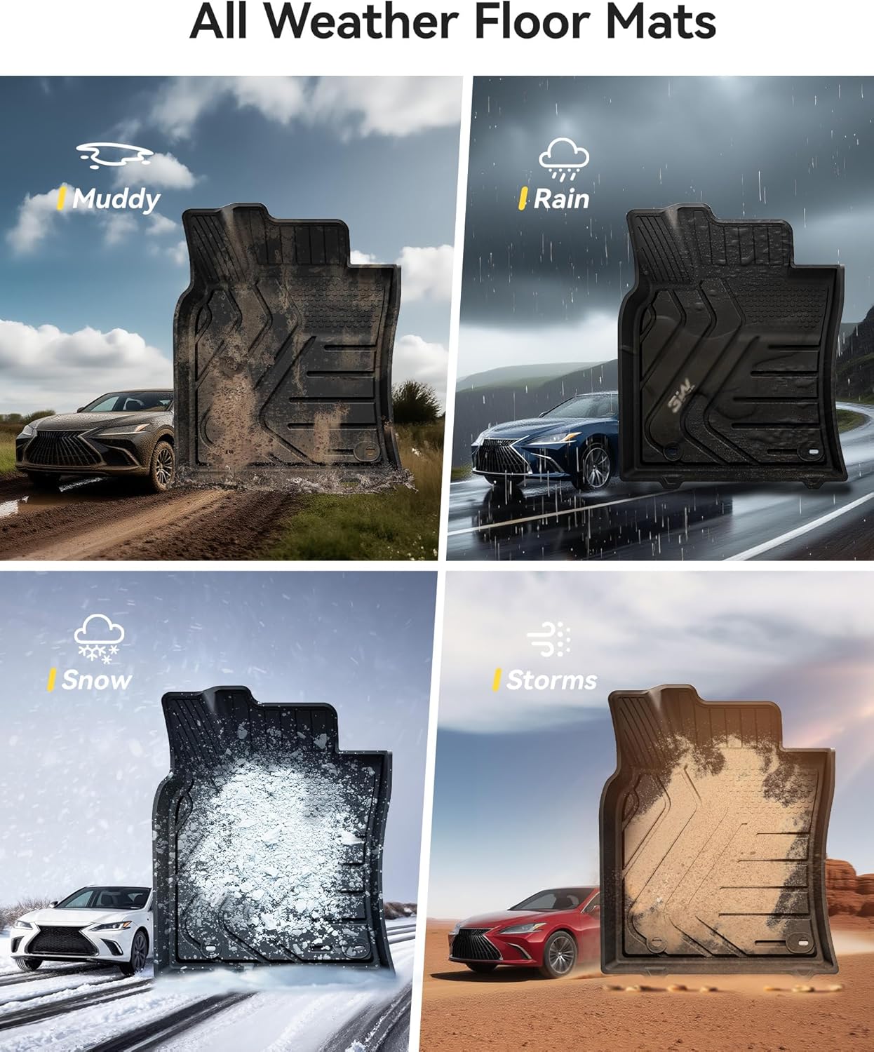 استخدمنا تقنية المسح ثلاثي الأبعاد المتقدمة للسيارة الحقيقية لالتقاط كل زاوية وانحناء بدقة، لتصميم الدعاسات الأمامية مخصصة تناسب سيارتي لكزس ES وتويوتا أفالون لسنوات 2013 : 2018. توفر هذه الدعاسات تغطية كاملة تساعد على حماية السجاد الداخلي من الأمطار والطين والثلوج، كما تحتوي الأوساخ الناتجة عن الأحذية المبللة أو المتسخة.